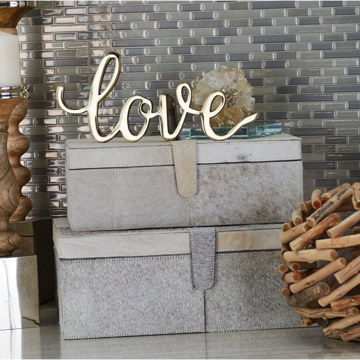 The perfect way to add depth and texture to your surface space is with this compact and discreet box. A practical yet stylish upgrade that instantly elevates the look of your room. Use these leather jewelry boxes together or separately to store personal belongings in the boudoir or bedroom or showcase table displays in the living room. Designed with felt or rubber stoppers at the base that prevent scratching furniture and table tops, as well as sliding around. This item ships in 1 carton. Comes with lids and tapered snap closures to ensure the safety of belongings. A leather box makes a great gift for any occasion. Due to the handmade nature of this item, no two will be alike, there will be slight differences in shape, size, and color. Suitable for indoor use only. This item ships fully assembled in one piece. Leather and hair on hide are natural products, and therefore no two will be alike. There may be slight variations in pattern, natural blemishes, colors, and overall aesthetic of the product. Made in India. This decorative keepsake box comes as a set of 2. Glam style.
