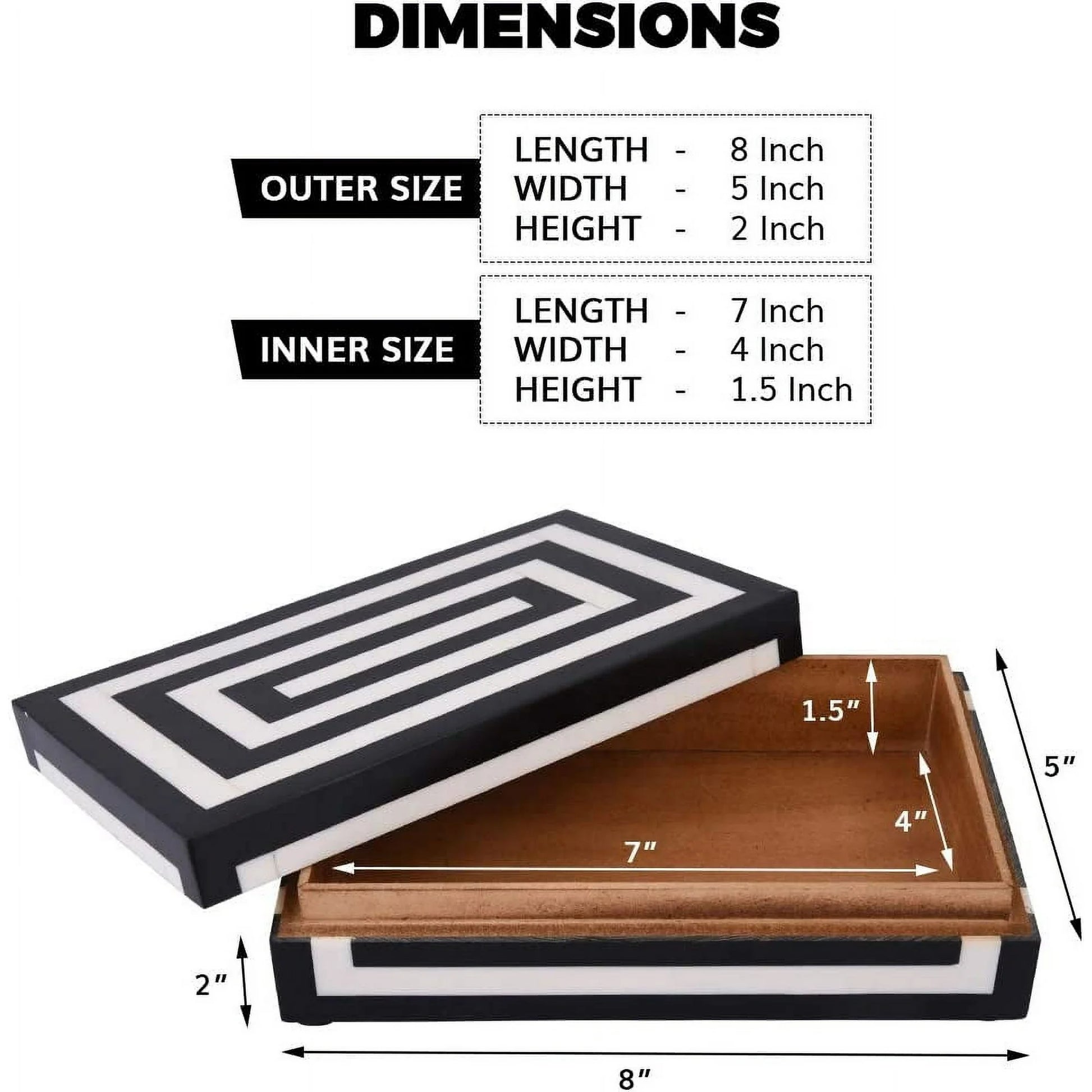 - Available size 8x5x2 inch. The inner size is 7x4x1.5 inch, it's enough to store watch & jewelry, keys, accessories in the box to be handy.
